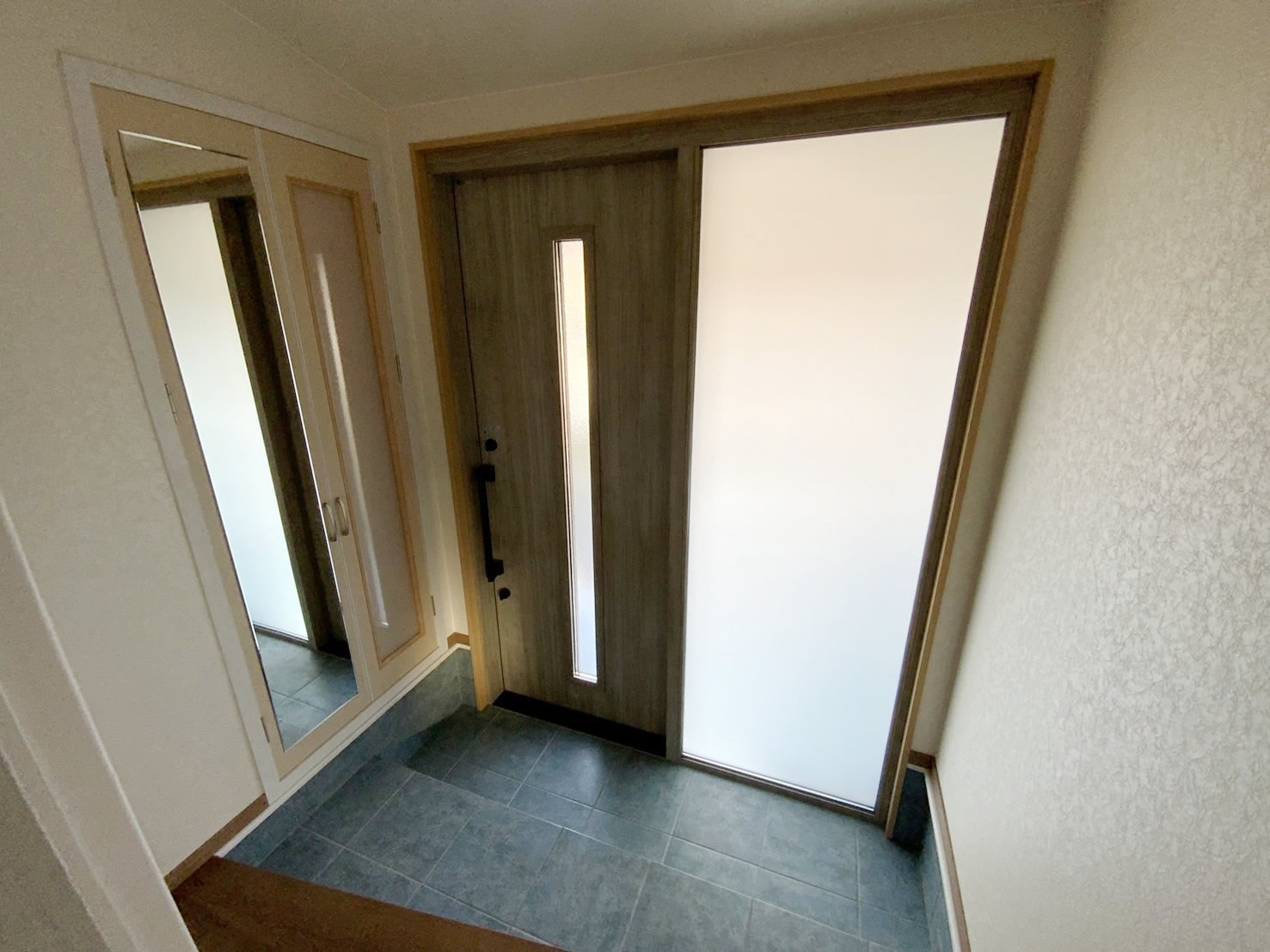 部屋を明るくなるように、天窓を2ヵ所設けました、下駄箱も大容量の製作品で、玄関も以前より広く明かりが入る玄関サッシにいたしました。